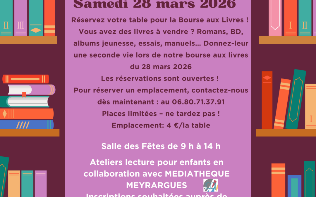 Vous avez des livres à vendre ? Romans, BD, albums jeunesse, essais, manuels… Donnez-leur une seconde vie lors de notre bourse aux livres organisée par l’association les Maux de Spondy- myalgie samedi 28 mars.