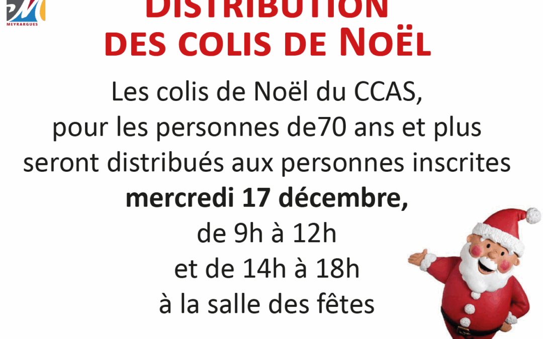 Les colis de Noël, offerts par le CCAS, seront distribués aux personnes inscrites dans la salle des fêtes :