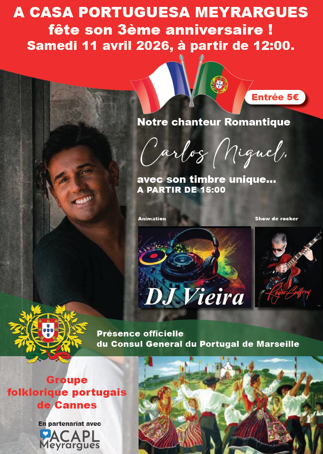 3e anniversaire de A Casa Portuguesa Meyrargues avec une journée animée et festive, en partenariat avec l’association des commerçants de Meyrargues (ACAPL Meyrargues) ! 🎉