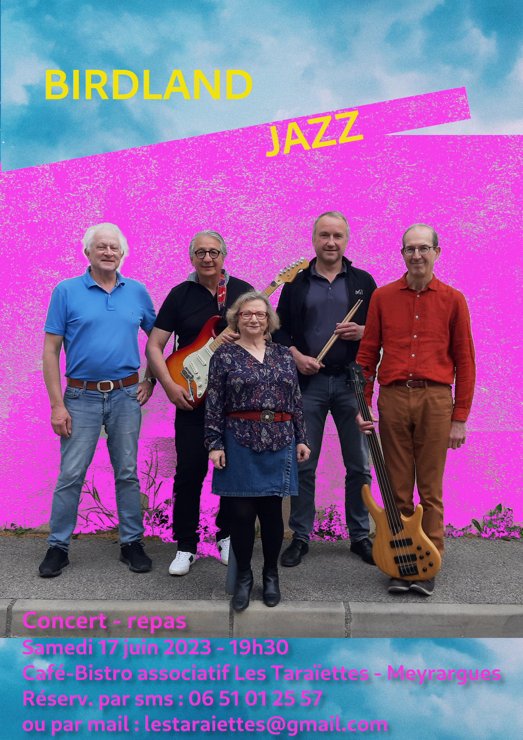 Pendant que vos papilles se délectent de quelques mets délicieux, Birdland Jazz exécute devant vous une recette éprouvée : on préchauffe le four à 210 balais, voix et piano sont mélangés énergiquement, on ajoute une pincée de flûte, quelques lignes de basse sont incorporées et on saupaudre le tout avec des accords de guitare ; on enfourne et on sert… CHAUD ! Après quelques bouchées sonores swinguantes, laissez-vous aussi tenter par la douceur de quelque ballade ou chanson…