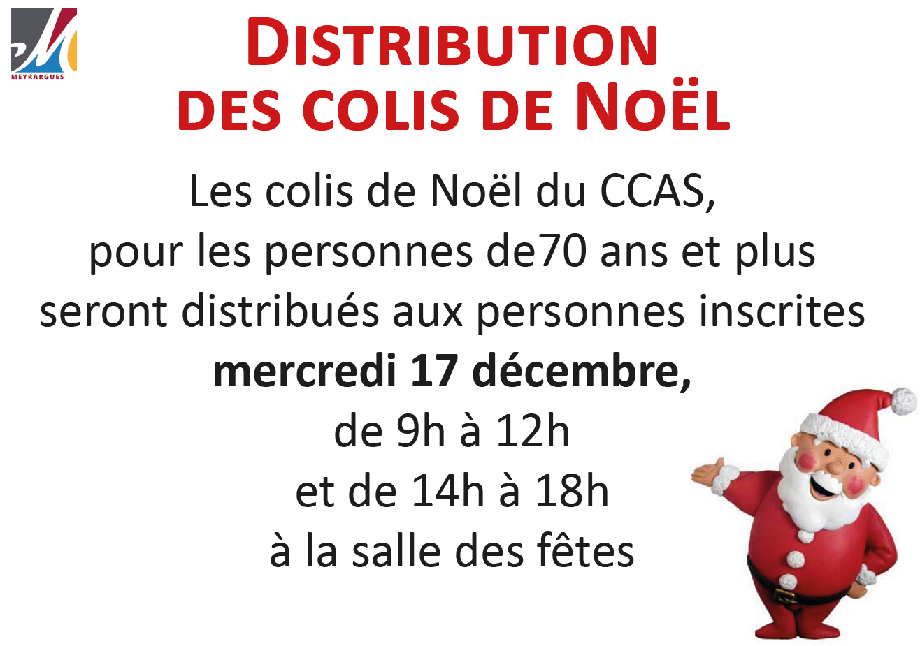 Les colis de Noël, offerts par le CCAS, seront distribués aux personnes inscrites dans la salle des fêtes :