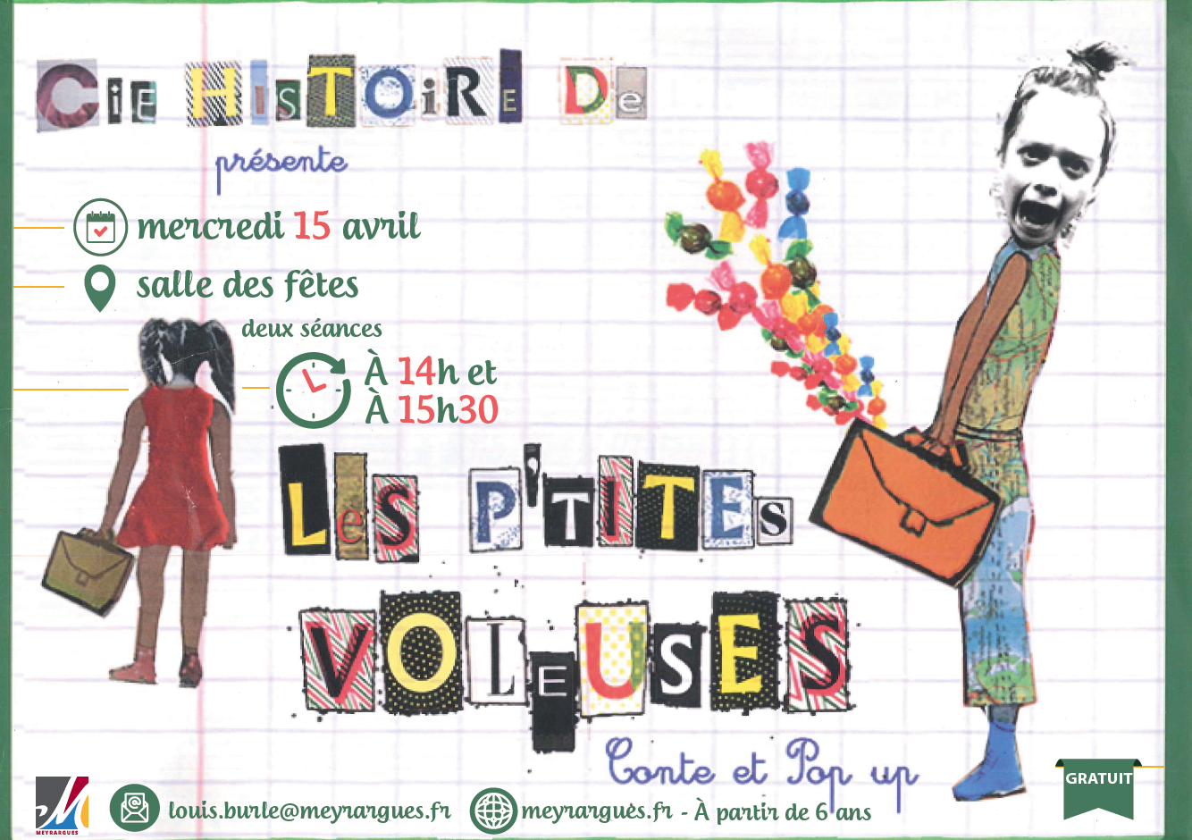 Spectacle familial conte et pop up par la compagnie « Histoire de » mercredi 15 avril dans la salle des fêtes, à partir de 6 ans. Durée : 35 mn.