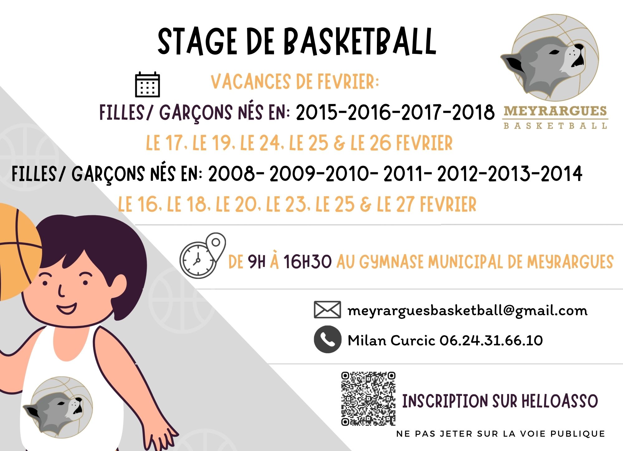 Meyrargues Basketball propose le stage pendant les deux semaines de vacances de février aux enfants de 7 à 17 ans: