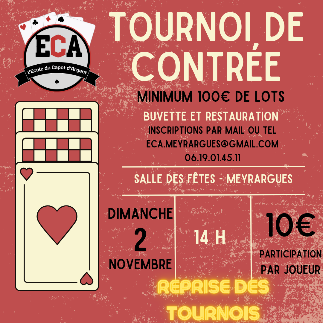 ♠️♥️♣️♦️ Reprise des tournois ! L’ECA (École du Capot d’Argent) vous invite à son prochain Tournoi de Contrée (règlement points faits):