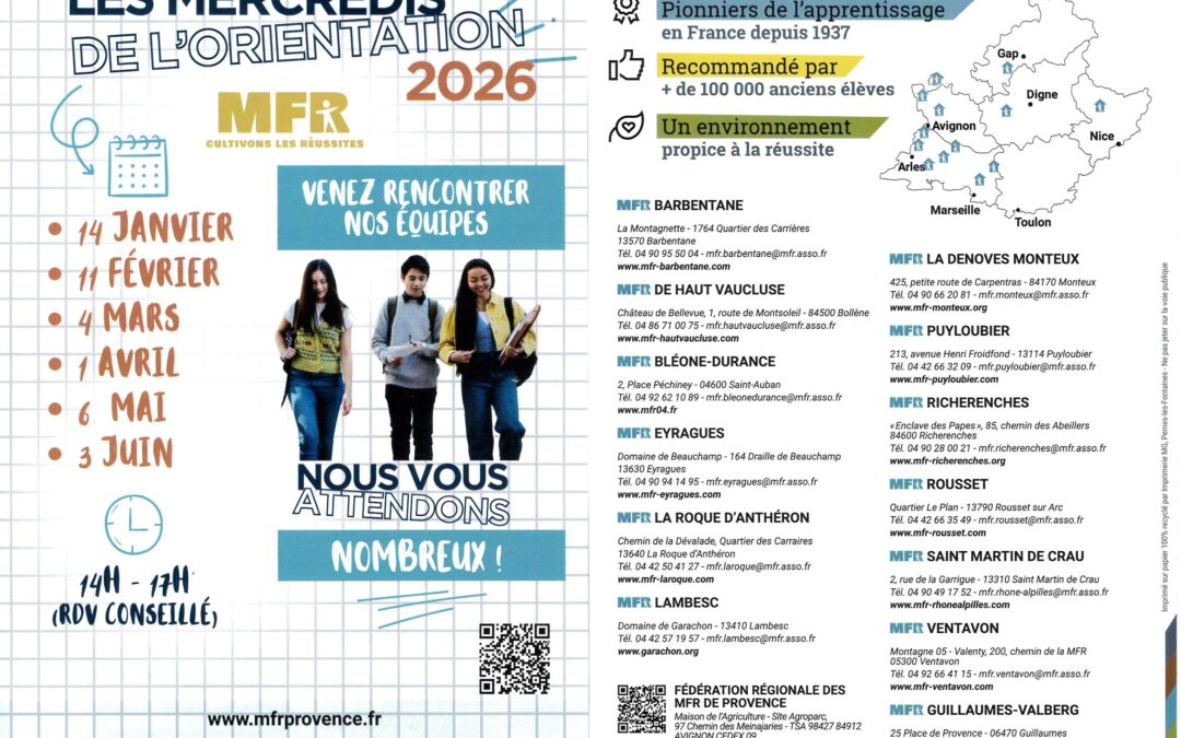 13 MFR DE LA REGION PROVENCE OUVRENT LEURS PORTES POUR VOUS FORMER ET VOUS ACCOMPAGNENT VERS LA FORMATION ET L’EMPLOI