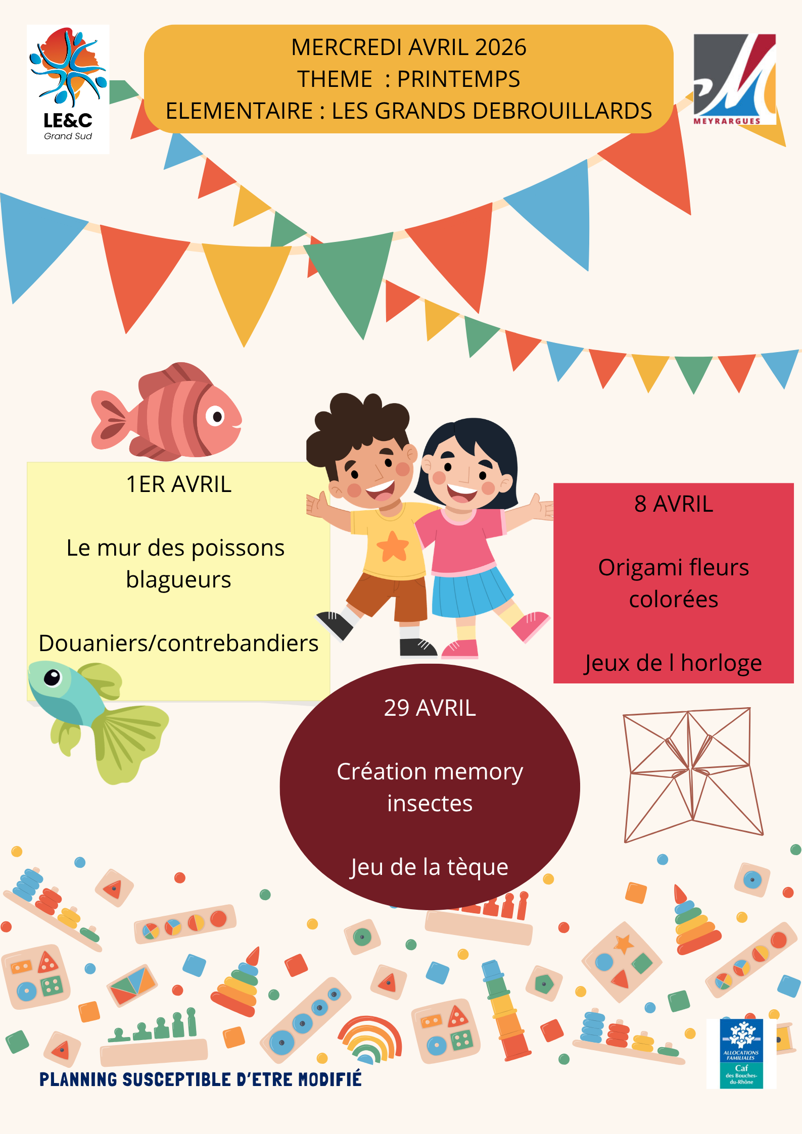 Planning des mercredis de avril élémentaire 25 Sep 2025 | CDL A LA UNE, CDL ACTIVITES, CDL INFOS, CDL NON CAT https://www.meyrargues.fr/wp-content/uploads/2025/12/Mercredis-janvier-6-11-ans.png