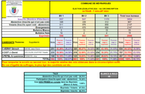 Les résultats du second tour des élections législatives 2024 à Meyrargues avec 2098 votants sur 3054 inscrits, soit un taux de participation de 68,70% :